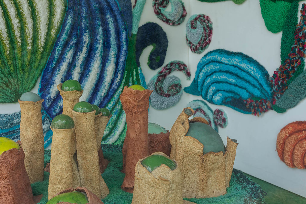 Inspirée par la nature, Claude Como crée des écosystèmes sensibles en tufting, (projection de laine). L’artiste réalise une installation tentaculaire au cœur de la Guérinière, rue Jean jaurès.