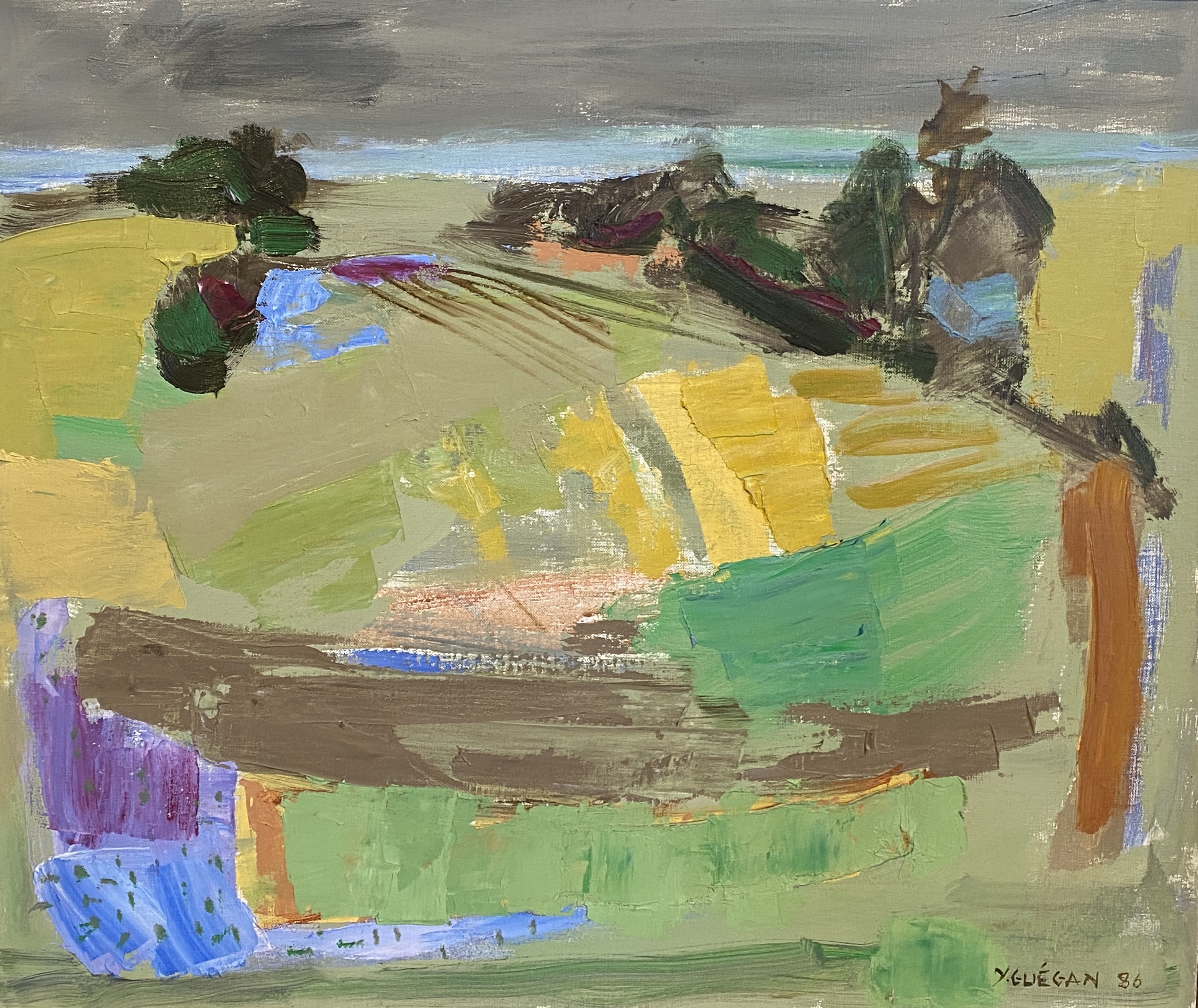 Elève de l’École Nationale Supérieure des Beaux-Arts de Paris, en 1935, Yvonne Guégan commence sa carrière à Caen en 1939 dans son petit atelier, détruit en 1944. Caen en ruine lui inspirera alors un ensemble d’œuvres où les décombres de la ville dessinent des formes proches de l’abstraction. Mais sa création prend aussi pour sujet les paysages de ses voyages ou encore la souffrance incarnée par les pensionnaires de l’hôpital psychiatrique du Bon Sauveur.